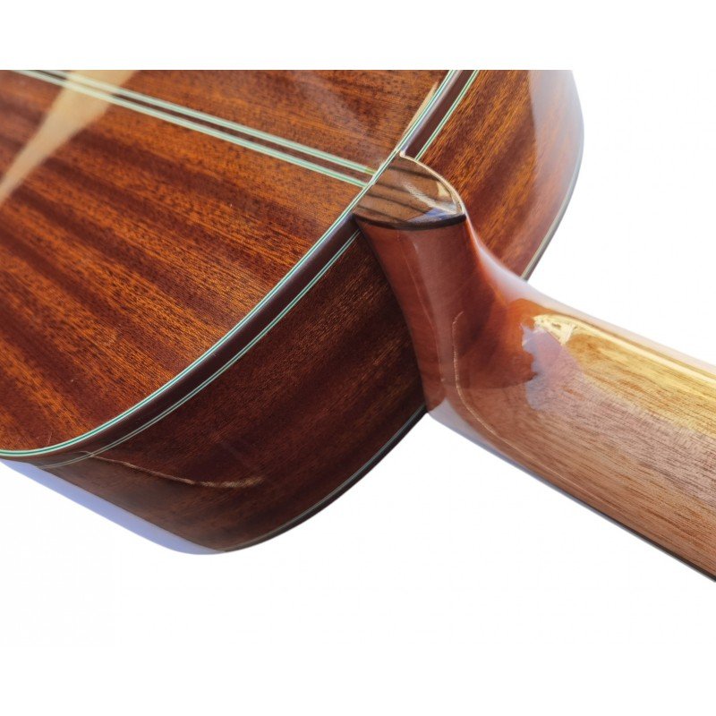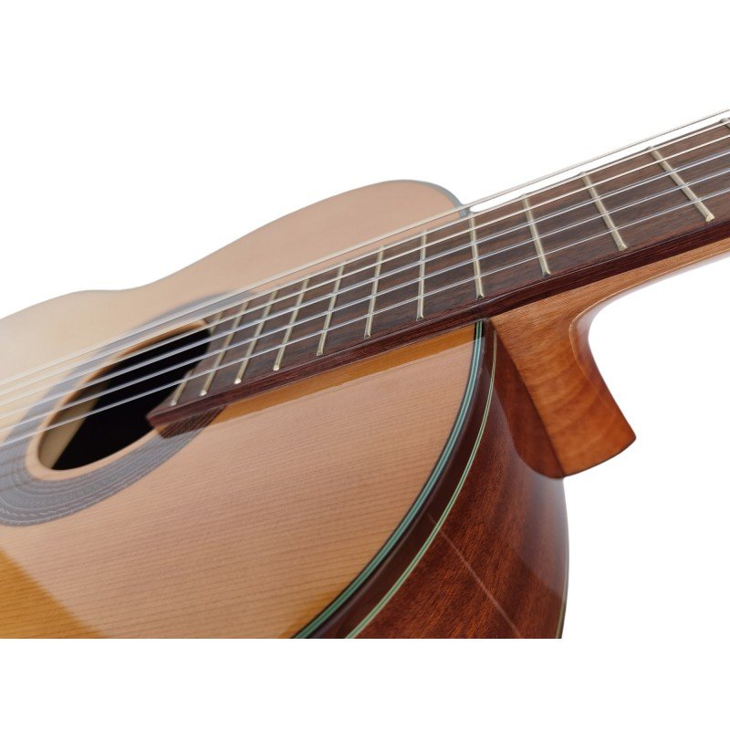 El acabado en brillo realza la belleza de las vetas naturales del cedro y la caoba, otorgándole un aspecto refinado y clásico. Con una construcción artesanal siguiendo los métodos de la escuela valenciana de luthería, la C320.205C garantiza durabilidad y una experiencia de toque cómoda, siendo perfecta tanto para estudiantes avanzados como para músicos intermedios que buscan una guitarra con carácter y sonido sofisticado.