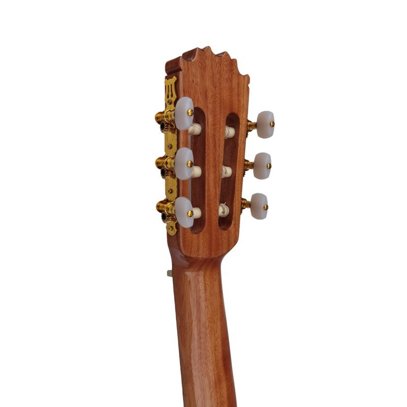 La C320.A3 de Vicente Tatay es una guitarra clásica que combina artesanía de alta calidad con un sonido excepcional. Con su tapa de abeto y acabado brillante, esta guitarra emite tonos brillantes y claros que llenan el espacio con elegancia. Su diapasón y puente de palosanto proporcionan una respuesta tonal equilibrada y una experiencia de juego cómoda. Además, la cenefa de madera de arce alrededor de la tapa y el fondo añade un toque de distinción a su diseño clásico. La C320.A3 es la elección perfecta para aquellos que buscan una guitarra clásica de calidad y estilo.