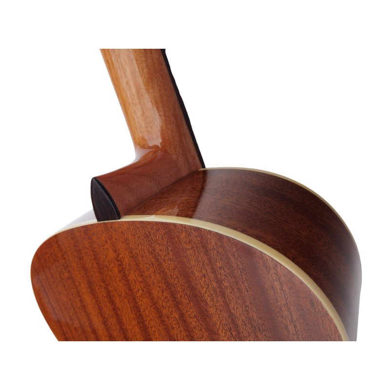 Manteniendo la misma estética clásica, este modelo destaca por su tapa de abeto y el acabado en brillo, fiel al diseño original. La guitarra cuenta con una cenefa decorativa alrededor de la tapa y el fondo, que está fabricado en madera de arce, otorgando no solo un sonido cálido y equilibrado, sino también un estilo visual que rinde homenaje a las guitarras icónicas de la marca.